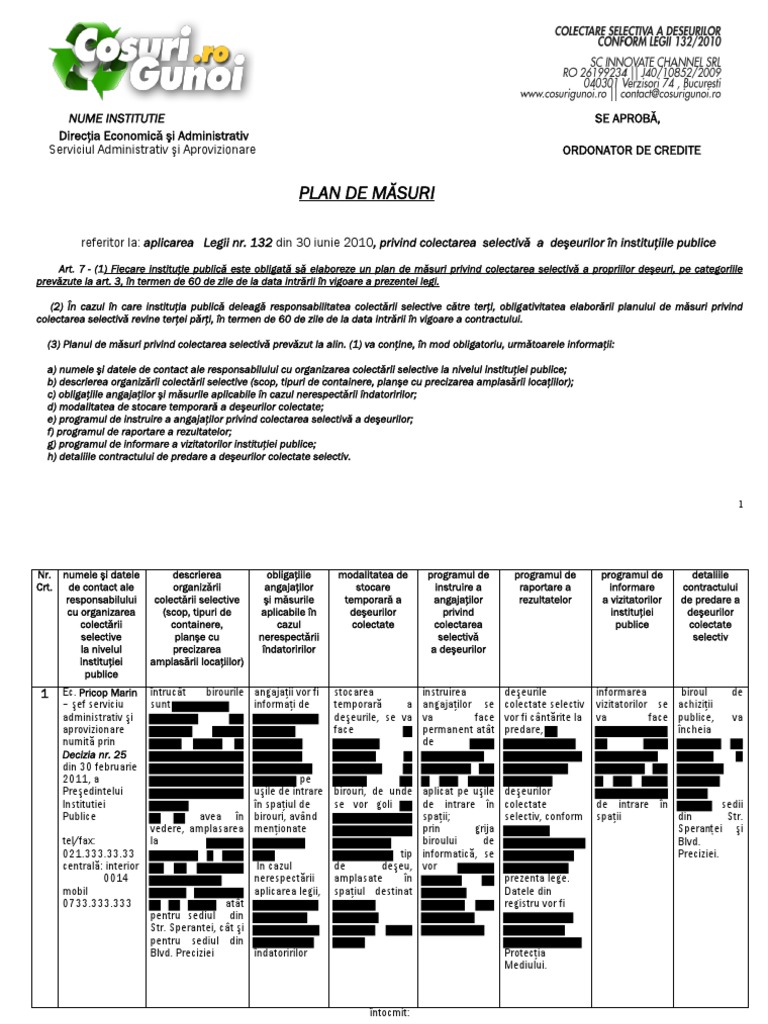 132 din 30 iunie 2010privind colectarea selectivă a deșeurilor în instituțiile publice. Adoptată de parlamentul româniei şi publicată în monitorul oficial nr. Text în vigoare începând cu data de 31 decembrie 2010 realizator: