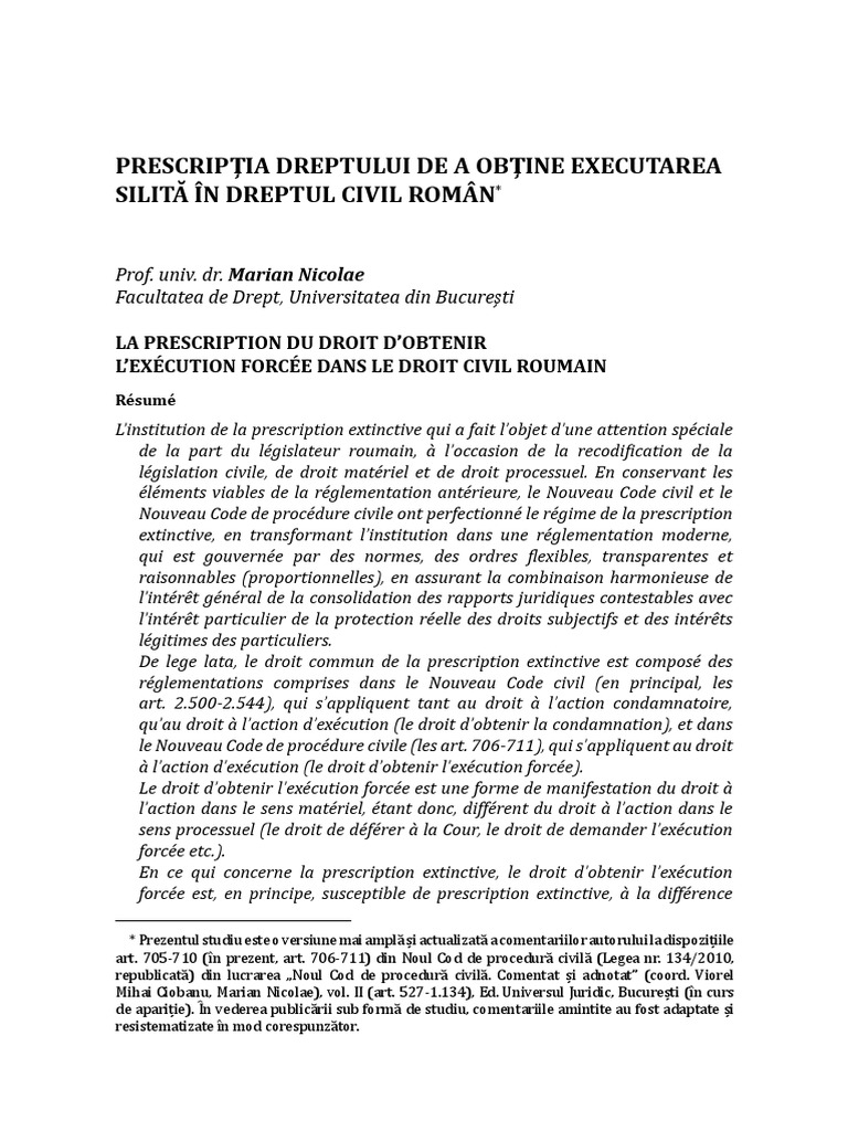 In fiecare caz in parte vom porni de la determinarea momentului nasterii dreptului material la actiune. Prescriptia dreptului de a executa silit un debitor, invocata ca exceptie sau chiar pe cale de actiune, poate fi folosita de catre orice persoana executata silit pentru a se apara impotriva unor executari silite ilegale! In dezvoltarea motivelor a aratat ca prescriptia dreptului la actiune a fost gresit retinuta deoarece, fata de modificarile aduse codului familiei sursa materialului si autoare a textului: