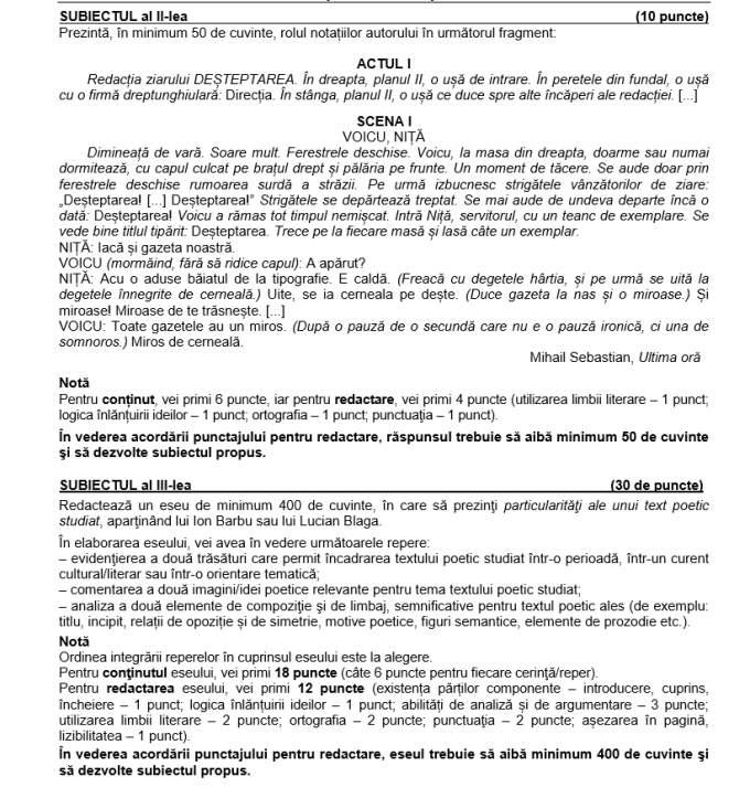 Puteti descarca subiectele de la sesiunea din august accesând linkurile de mai jos: Astăzi se va desfășura proba scrisă la limba şi literatura maternă, iar miercuri, 23 august, este programată proba obligatorie a profilului. Luni, 07 august 2017 13:03.